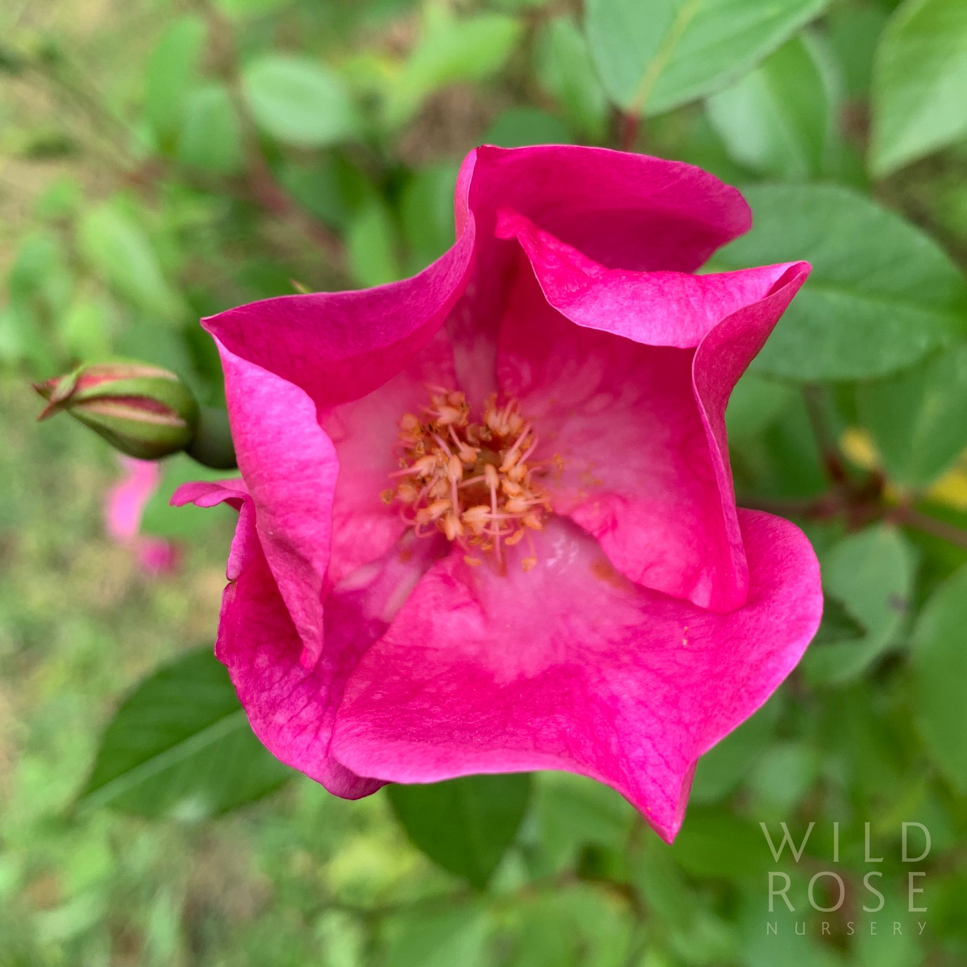 Clusters of medium, single, cerise / magenta to deep pink flowers ageing to lighter with pointed buds