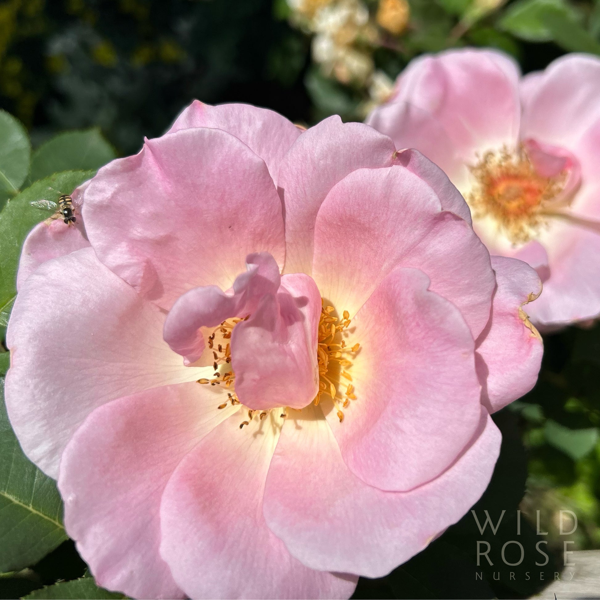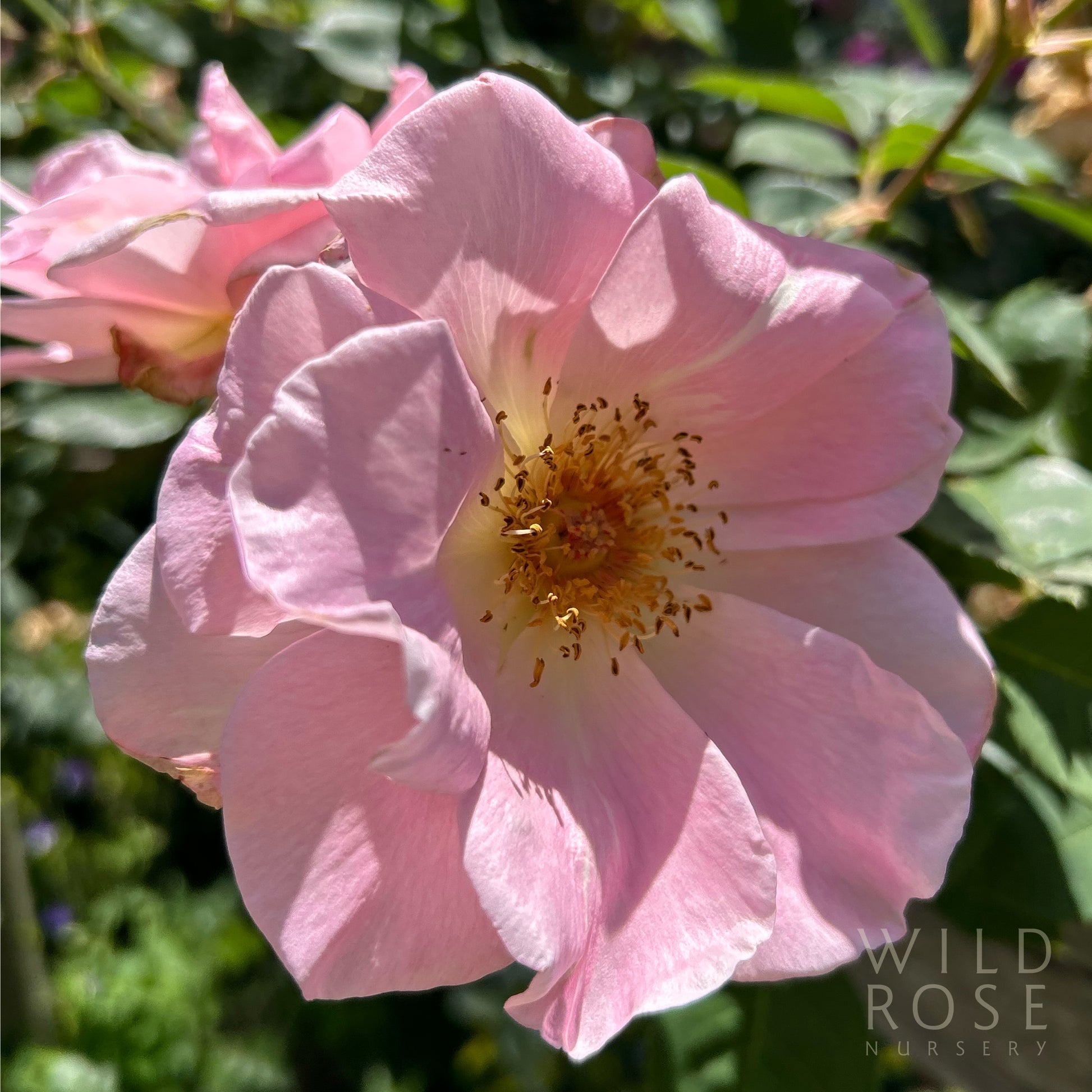 Large, single to semi-double, ruffled, scalloped, light-pink flowers