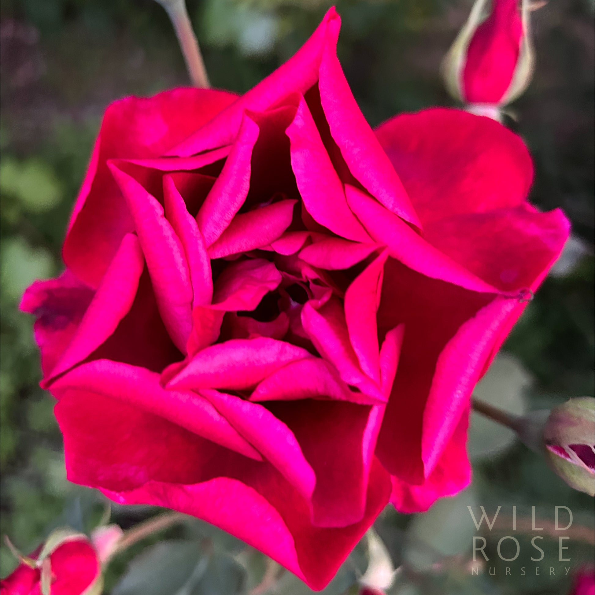 Large, full, cupped, deep velvety-crimson flower, occasionally blueing