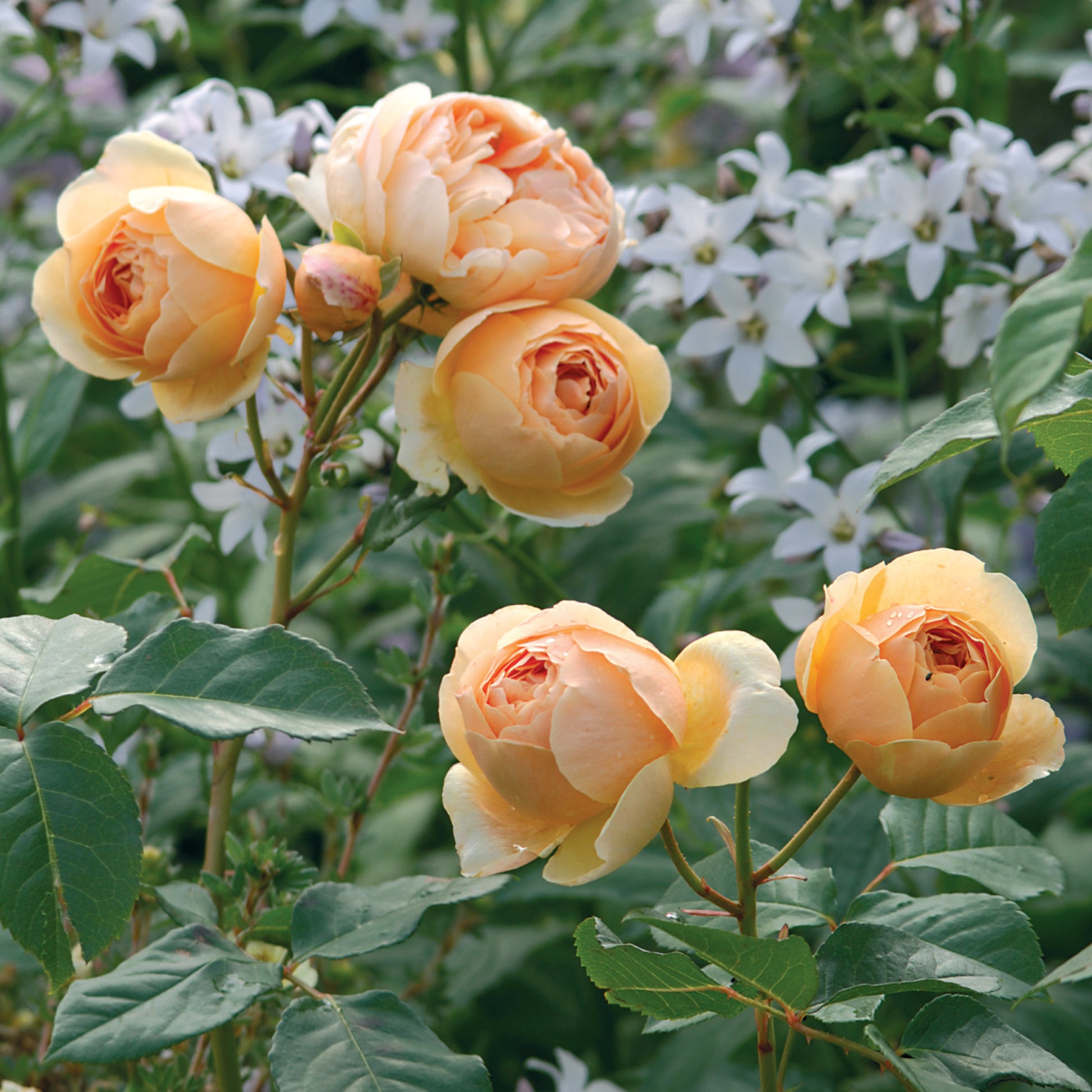 Large, very full, globular flowers of pale apricot with cream shading and lighter reverse