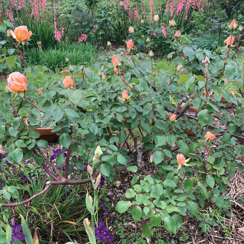Large, fully double, ochre yellow to deep apricot flowers ageing to pale