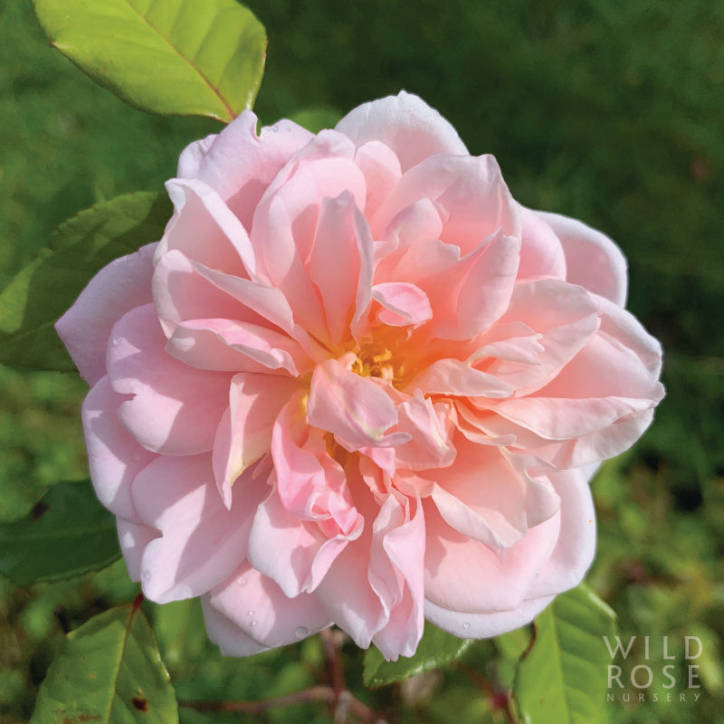 Medium-large, double, variable petal arrangement, folded to quills, soft salmon-pink flowers fading to pale pink and cream with apricot or lilac tints