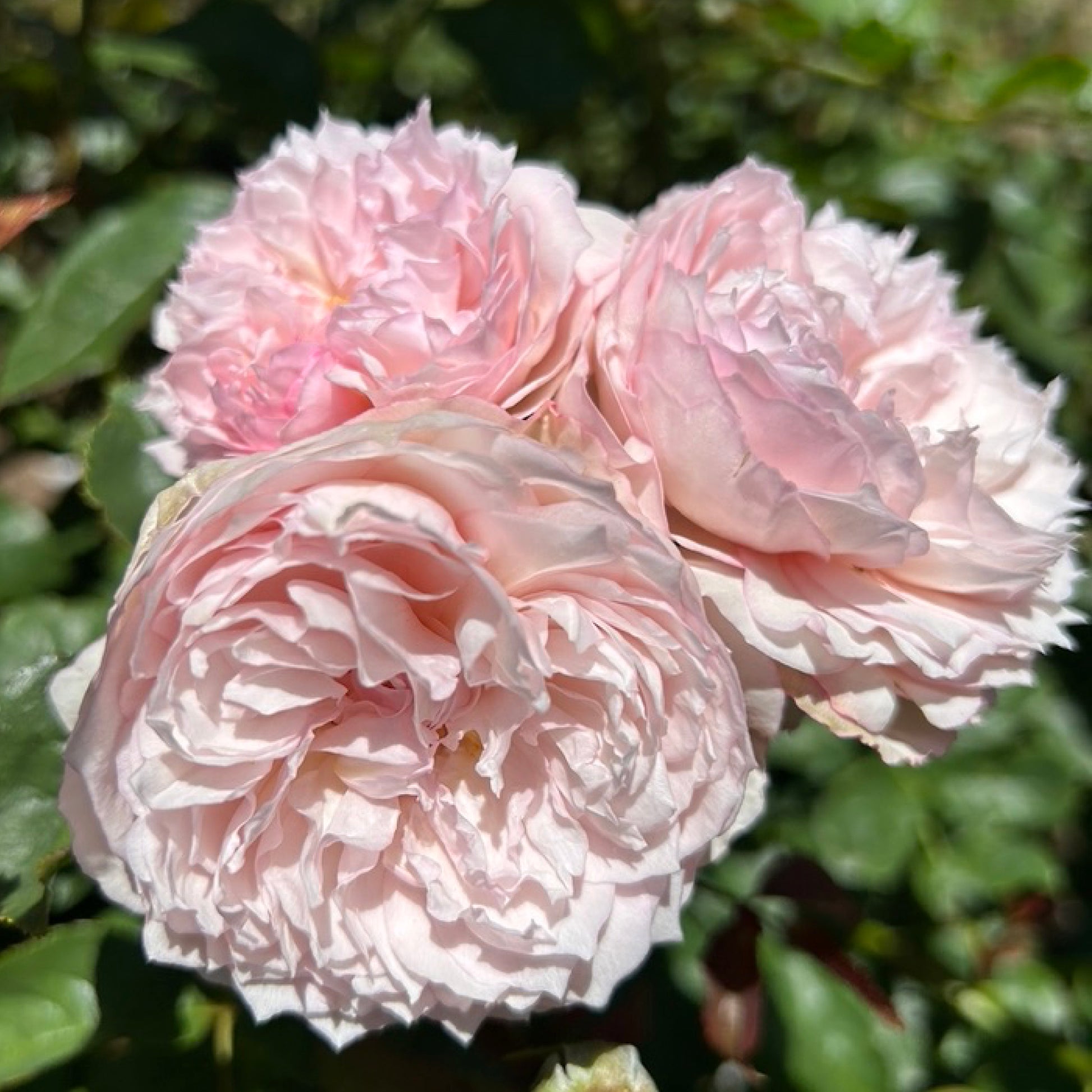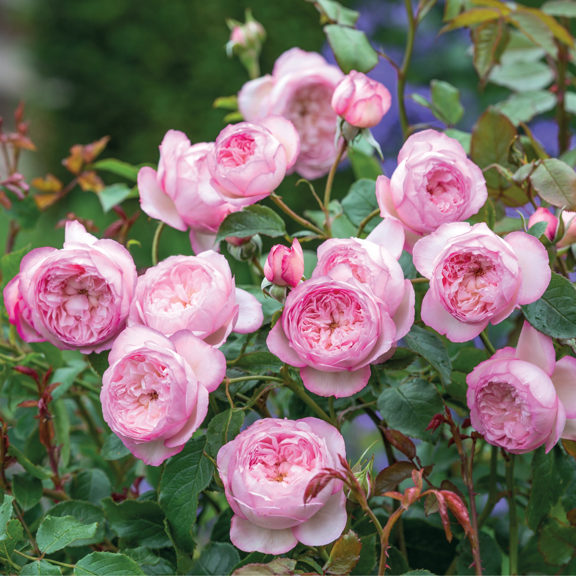 Large clusters of medium, very full, cupped, pink to lilac flowers with pointed, wide oval buds, carmine-pink edges and ageing to lighter